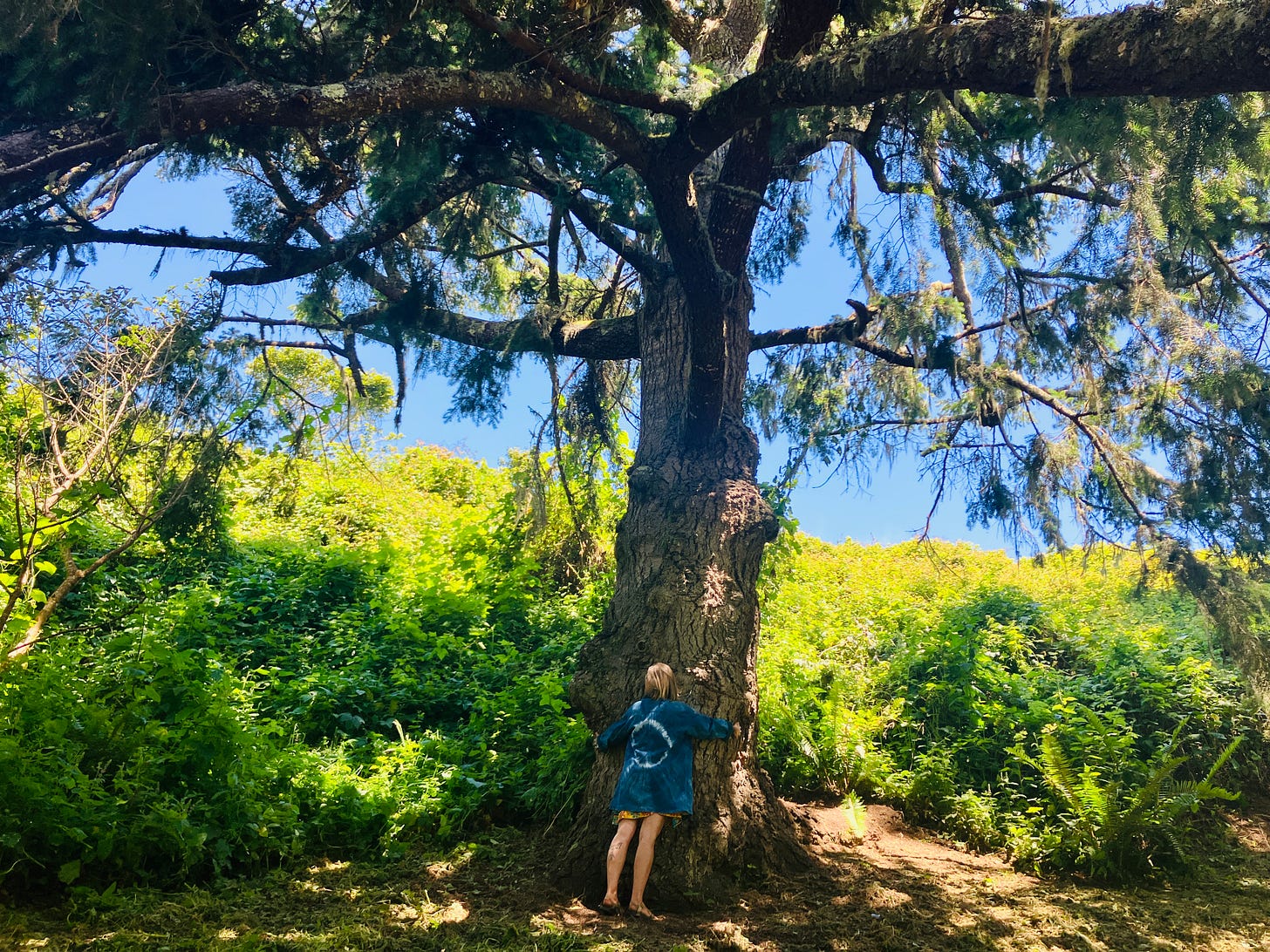 pictured above: a photo of myself, hugging the tree who held the “temple of earth” installation i shared at this summer’s outer roominations on table bluff in humboldt county